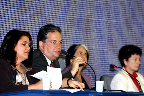 Garantindo apoio às implementações e implantações de políticas de proteção à mulher, o Prefeito de Campos, Nelson Nahim, participou na tarde desta segunda-feira (09) da audiência pública da Comissão de Defesa dos Direitos da Mulher da Assembléia Legislativa do Rio de Janeiro (Alerj), realizada na Câmara de Vereadores de Campos. Estiveram na cidade também a ministra da Secretaria Especial de Políticas para as Mulheres, Nilcéia Freire, a presidente da comissão da Alerj, a deputada estadual Inês Pandeló (PT), e a superintendente Estadual de Direitos da Mulher, Cecília Teixeira Soares