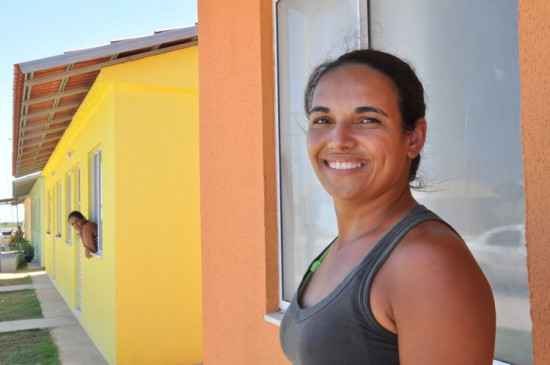 Clarissa, casada há 3 anos com Egildo, 37, é mãe de Mickaelle, de um ano e oito meses. Da janela, mãe e filha observam o movimento e Clarissa sorri quando fala de sua nova residência.