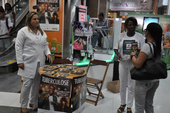 Cerca de 800 panfletos foram distribuídos nesta terça-feira (24), no hall do Campos Shopping, no Centro da cidade, pela equipe do Programa Municipal de Combate à Tuberculose (PCT). A ação teve caráter preventivo e marcou o Dia Mundial da Luta contra Tuberculose. O tema da campanha de 2015 é “Tuberculose: o tratamento foi o maior sucesso da minha vida”, e o Ministério da Saúde usou o cantor de pagode Thiaguinho como garoto-propaganda.