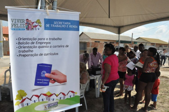 A Secretaria Municipal de Trabalho e Renda teve um estande dos mais concorridos durante a realização do Programa Viver Feliz, que foi realizado neste sábado (28), na praça principal do novo Condomínio Solares Campistas, no Parque Esplanada.