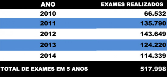 No primeiro e segundo bimestres deste ano foram regulados 14.867 e 12.655 exames respectivamente, totalizando 27.522, somente nos quatro primeiros meses de 2015. De acordo com a Secretaria Municipal de Saúde, há outros exames que são pagos pelo município, mas de regulação estadual.