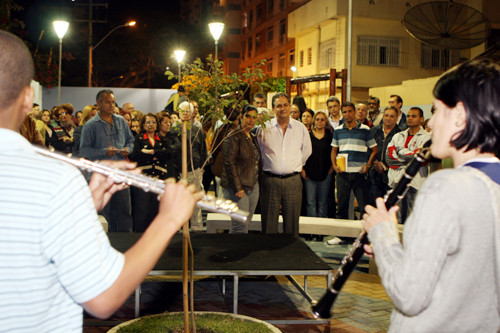 Recepcionado pelos músicos da Orquestra Sinfônica Jovem de Campos, o Prefeito Nelson Nahim inaugurou na noite de quinta-feira (19) a Praça Primeiro de Maio, atendendo a uma solicitação dos moradores da área central de Campos, que pediram a criação de uma área de lazer, em meio ao trânsito intenso do local.