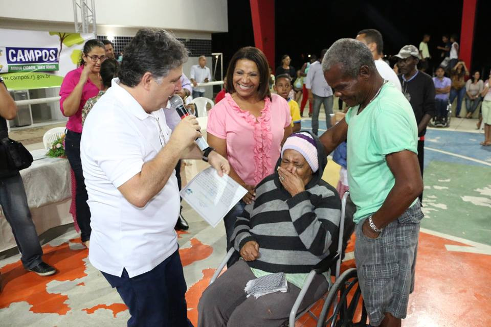 Os documentos que asseguram à titularidade do imóvel às famílias que foram retiradas de áreas de risco, como margem das lagoas, rios, rodovias e da ferrovia, foram entregues pelo secretário de Governo, Anthony Garotinho, e pela coordenadora do Programa Viver Feliz, Linda Mara Silva, que gerencia a expedição dos títulos de posse.