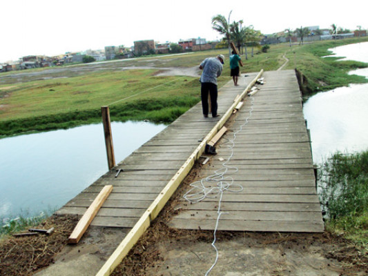 Com o objetivo de garantir a segurança dos moradores que passam, diariamente, pelo local, a Prefeitura de Campos vem realizando através da Secretaria Municipal de Obras e Urbanismo, a recuperação da ponte de pedestres sobre o Brejo Carangueiro, na entrada da praia do Farol de São Tomé.