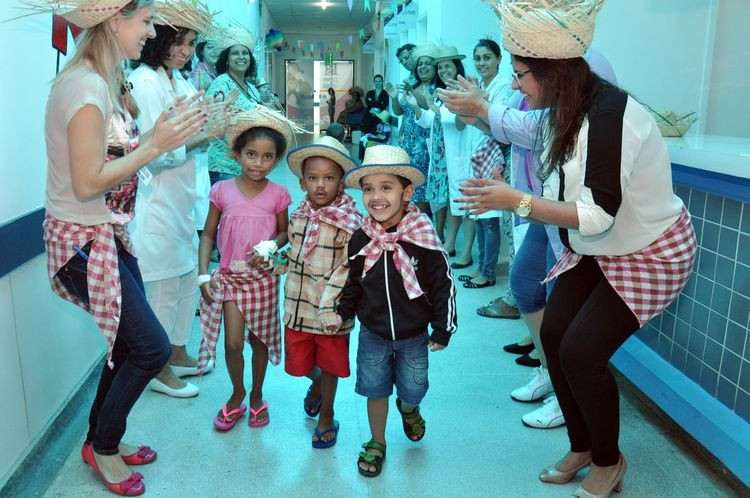 A coordenadora da enfermagem da pediatria, Simone Perrone, disse que somente puderam participar da festa julina, as crianças liberadas pela equipe médica, um total de 10. O vigilante Bruno Cordeiro, 30 anos, entrou na quadrilha com seu filho, Bernardo Monson, 3. “A criança acaba se distraindo e isso a ajuda na recuperação”, disse.