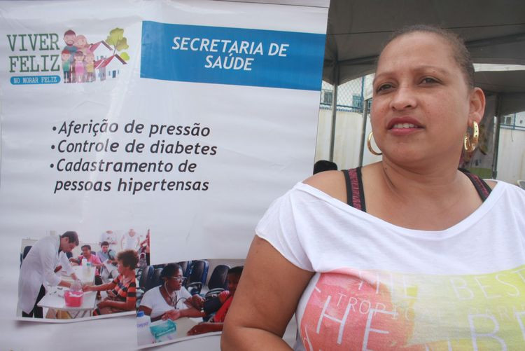 Aferição de pressão arterial e teste de glicemia foram um dos serviços gratuitos ofertados pela secretaria municipal de Saúde durante a realização do Projeto Viver Feliz, no Recanto dos Poetas, condomínio do Morar Feliz de Saturnino Braga, na Baixada Campista. O projeto vem sendo realizado em todos os condomínios construídos pela Prefeitura de Campos, através dos recursos dos royalties do petróleo.