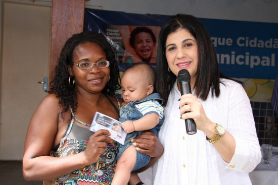 O Cheque Cidadão assegura a transferência de renda mensal no valor de R$ 200 para 11 mil famílias com renda per capita mensal de um terço do salário mínimo. A prefeita orientou os beneficiários a não deixar os novos cartões e os documentos pessoais com os donos de supermercados.