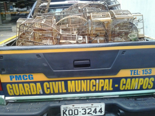Após denúncia anônima, o Grupamento Ambiental da Guarda Civil Municipal de Campos apreendeu neste sábado (12), próximo ao distrito de Dores de Macabu, na área rural de Campos, 43 aves silvestres mantidas em cativeiro de forma ilegal, 60 gaiolas e 11 alçapões. O responsável pelas aves foi conduzido à 134ª Delegacia Legal pelos guardas ambientais. Entre as espécies encontradas, estavam cinco sanhaços, 16 papa capins, 12 canários da terra, três bicos de lacre, dois caboclinhos, um sabiá laranjeira e quatro tizis. A operação foi comandada pelo guarda ambiental, Marco Soares.
