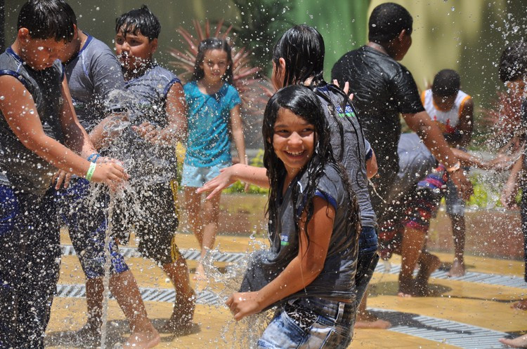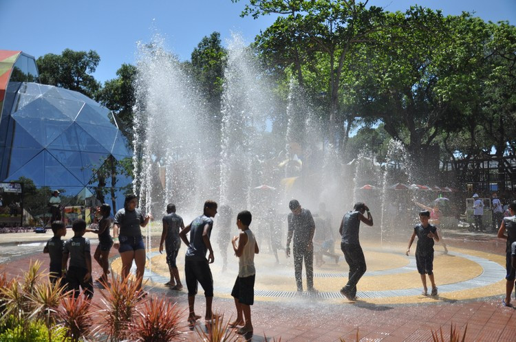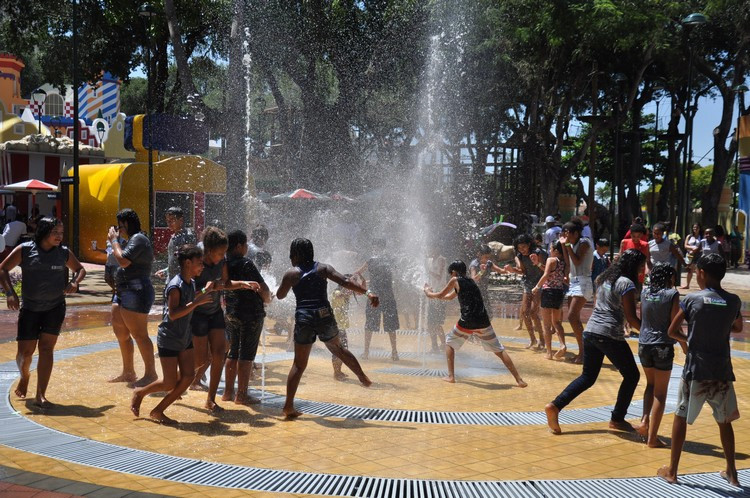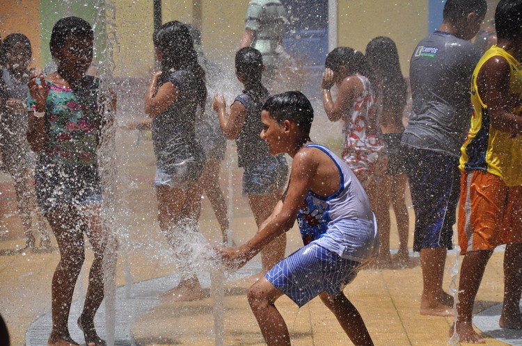 O Dia das Crianças foi de alta temperatura em Campos. Os termômetros marcavam mais de 30 graus e os primeiros visitantes da Cidade da Criança Zilda Arns, parque temático aberto nesta segunda-feira (12) para uma visita de apresentação a alunos da rede municipal e assistidos da Fundação Municipal da Infância e da Juventude (FMIJ). Um dos locais preferidos das crianças foi a fonte interativa. Lá, eles se deliciaram com as águas dançantes, uma opção divertida e refrescante. Todas as crianças foram orientadas pela Secretaria de Educação, Cultura e Esportes a levar peças de roupas para troca, após banho na fonte. O sistema reaproveita a água que, ao retornar, é tratada novamente e volta para o reservatório.
