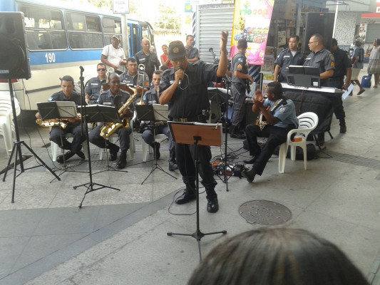 Banda da PM muda rotina na véspera do Réveillon na Rodoviária Roberto Silveira
