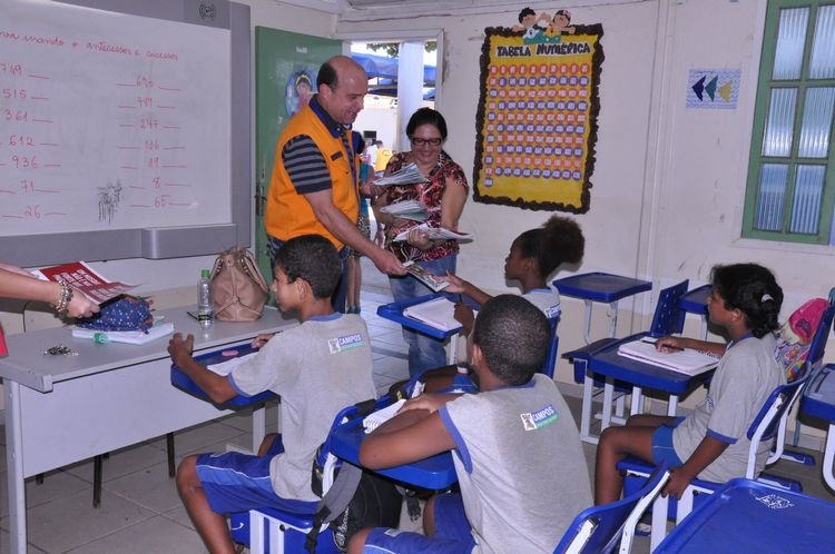 A Prefeitura de Campos e a Coordenadoria da Regional Norte da Defesa Civil (REDEC), órgão ligado ao Corpo de Bombeiros do Estado do Rio de Janeiro, realizaram trabalho de parceria contra o mosquito Aedes aegypti nesta sexta-feira (8), em Goitacazes. Servidores das duas instâncias distribuíram cartilhas e revistas em quadrinhos aos estudantes da Escola Municipal Manoel Coelho. A medida integrou as ações do Mutirão de Combate ao Aedes Aegypti, transmissor da zika, dengue e chikungunya.