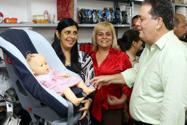 Cooperativa de Costureiras - O prefeito e a primeira dama visitaram também a Cooperativa de Costureiras (Cooperlíder) e conferiram o trabalho realizado pelas 54 profissionais. Elas produzem 1.200 peças de capas para cadeirinhas e booster (assento de elevação) para a Dorel do Brasil. Os equipamentos são obrigatórios para o transporte de crianças em carros, de acordo com a determinação do Conselho Nacional de Trânsito (Contran). “As costureiras estão com rendimento quinzenal entre R$ 1.300 a R$ 1.400, uma média mensal de quase R$ 3 mil”, disse o prefeito.