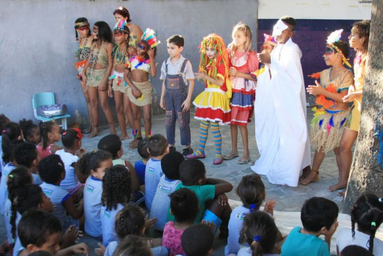 Já a Julia Emanuelle, do 2º ano, que representa a Emília na peça, diz que adora atuar. ”É muito divertido estar aqui me apresentando pra os meus amigos. A gente aprende muito sobre as histórias. Eu gosto muito de falar e dançar e me apresentar está fazendo crescer em mim uma vontade enorme de ser atriz. Eu amo estar aqui com meus amigos”.