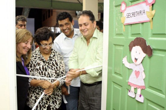A prefeitura entregou na noite desta quarta-feira (15) à população, mais duas unidades escolares reformadas. A Escola Municipal Santo Antônio, no Jardim Carioca, e a Creche Escola Grevi Siqueira, em Custodopólis, receberam reformas nas partes elétrica e hidráulica, no piso, além de pintura geral.