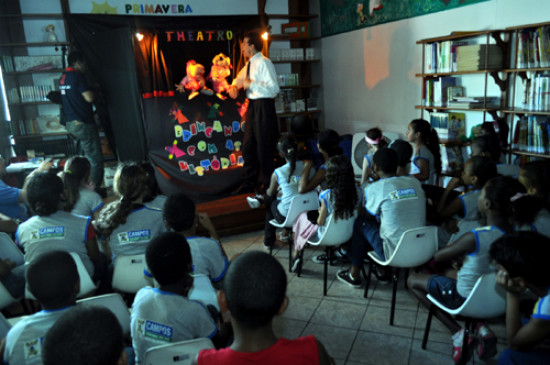 O espetáculo “O Invencioneiro e suas criaturas – Teatro de Fantoches”, que faz parte do Projeto “Brincando com a histórias”, do Departamento de Literatura da Fundação Cultural Jornalista Oswaldo Lima, foi apresentado nesta quarta-feira (22), na Biblioteca Infantil Lúcia Miners, no Palácio da Cultura. Na plateia, estavam 35 crianças dos 4º e 5º anos do Ensino Fundamental da Escola Municipal Vilma Tâmega.