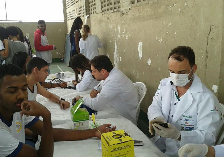 Em ação extramuros realizada nesta sexta-feira (29) pelo Departamento de Assistência Farmacêutica da Secretaria Municipal de Saúde, dois adolescentes foram diagnosticados com pressão alta. Eles foram orientados e encaminhados para tratamento. Ao todo, 90 estudantes da Escola Estadual Rotary II foram avaliados pelos profissionais do DAF, por meio do projeto promovendo, protegendo e Recuperando a Saúde.