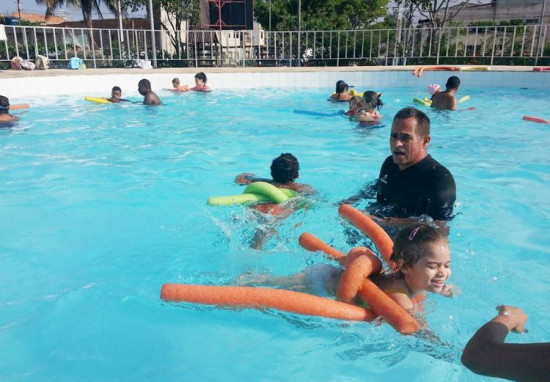 Natação para bebês na Vila Olímpica do Parque Guarus