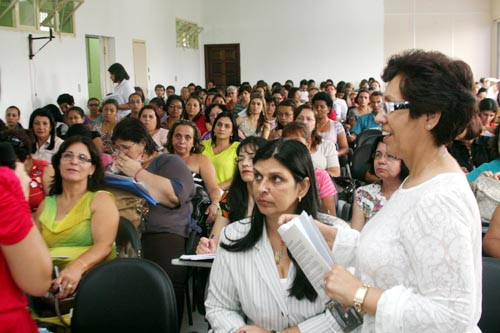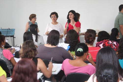 A primeira dama, Nélia Nahim, e a Secretária Municipal de Educação, Joilza Rangel Abreu, participaram nesta sexta-feira (1º), da reunião com os diretores da rede municipal. O encontro aconteceu no auditório da secretaria, quando foram anunciadas ações que serão realizadas este mês, entre elas, liberação das escolas que serão utilizadas como locais de votação, programações do Mês da Criança, no dia 12, e do professor, no dia 15, além do início do processo de pré-matrícula da rede, entre outros.