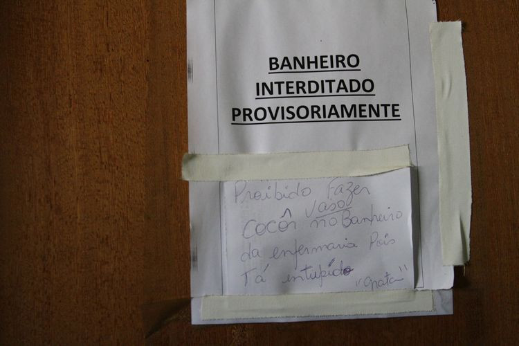 cadeiras estão quebradas e banheiros estão impróprios para o uso.