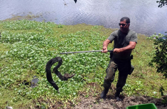 Entre os dias 11 e 21 deste mês, três cobras jiboias foram capturadas pelo Grupamento Ambiental do Município (GAM) na área urbana de Campos e, depois de avaliação da equipe de veterinários do Núcleo de Estudo e Pesquisa de Animais Silvestres (Nepas), da Universidade Estadual do Norte Fluminense Darcy Ribeiro (Uenf), os animais são devolvidos à natureza. Só este ano, 10 animais silvestres voltaram para o seu habitat natural, depois de serem capturados pelo GAM: além das três jiboias, também foram encontrados quatro gambás e três cágados.