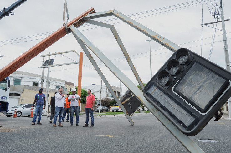 IMTT troca estrutura de semáforo que ameaçava desabar