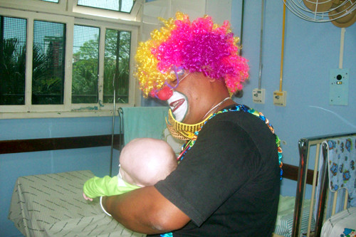 A semana foi encerrada nesta sexta-feira (08) pelo palhaço Binho, personagem do fisioterapeuta do HFM, Rubem Júnior, que acompanhado da esposa Cláudia, que também é fisioterapeuta do HFM, e da filha Ayla, distribuiu doces e presentes na clínica pediátrica. Em seguida, foi oferecido um lanche com o apoio de funcionários da Escola Municipal Rotary I, cujo aluno está internado na pediatria do hospital e do serviço de nutrição do HFM.