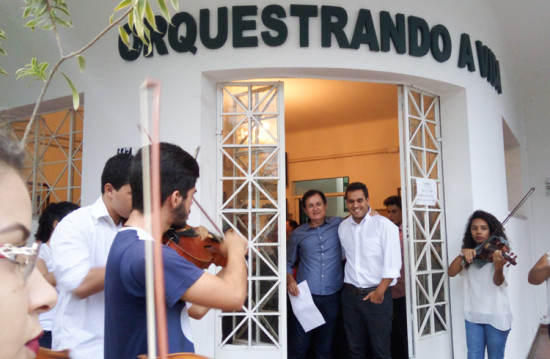 Ao lado da vice-prefeita, Conceição SantAnna; presidente da Fundação Cultural Jornalista Oswaldo Lima (FCJOL), Cristina Lima; do superintendente da Águas do Paraíba, Juscélio Azevedo; dos maestros Jony William Vianna, idealizador do projeto, e Luís Maurício Carneiro, diretor artístico e fundador da ONG, Diniz conheceu todas as turmas na ONG e conversou com alunos e instrutores. Diniz agradeceu a parceria da concessionária e declarou que investir nas crianças é mais que contribuir para o futuro do município, é transformar a vida da pessoas através da arte.
