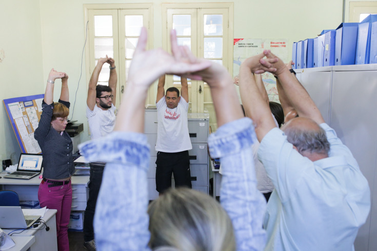 O professor também comentou sobre a importância de atividades como alongamento e agachamento para todos os profissionais e deu dicas para os que passam muito tempo sentados e realizando atividades no computador. “Podemos também fazer caminhadas curtas e até utilizar mobiliário do setor como apoio para algumas atividades. Precisamos de saúde para trabalhar. Não podemos ser consumidos pelas máquinas”, conta.