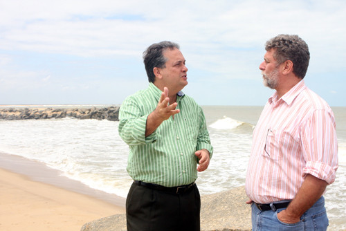 Durante o almoço de trabalho, o prefeito Nahim e o prefeito Armando Carneiro, assessorados pelo corpo técnico das respectivas prefeituras, discutiram o detalhamento para a execução das obras de infra-estrutura orçadas em R$ 166 milhões para a dragagem, o by pass, a construção de mais 130 metros de enrocamento de pedras (conclusão do espigão já existente) e da construção de um píer de 400 metros para adequação das correntes marinhas no lado Sul da foz do canal, para evitar o assoreamento.