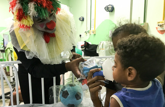 Aprendizes atuam em diversos setores da Prefeitura de Campos. Vestidos de palhaço, grupo distribuiu os brinquedos em três hospitais e um abrigo.