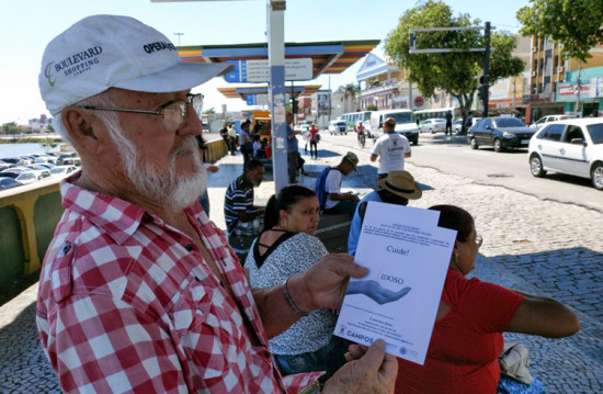 As abordagens aconteceram no Terminal Rodoviário Roberto Silveira, Luís Carlos Prestes e no Shopping Estrada. Além de distribuírem panfletos, as equipes orientaram em relação aos cuidados com os idosos.
