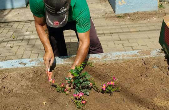Praça do Parque Prazeres, em Guarus, passou por revitalização com a ajuda de moradores. O paisagismo do local foi refeito com plantas ornamentais e ainda plantio de árvores frutíferas.