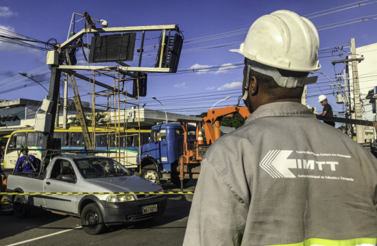 Prosseguem nesta segunda-feira (9) os trabalhos para substituição do semáforo, atingido durante uma colisão de veículos, no cruzamento da Avenida José Alves de Azevedo com Rua Saldanha Marinho. A ação do Instituto Municipal de Trânsito e Transporte (IMTT) conta com apoio da Guarda Civil Municipal, para ordenamento do trânsito. O término dos trabalhos está previsto para esta noite.