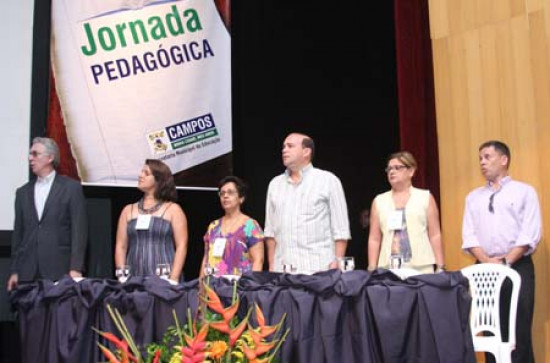 O vice-prefeito, Doutor Chicão, representando a prefeita Rosinha Garotinho, abriu oficialmente a Jornada Pedagógica, realizada pela secretaria de Educação, nesta segunda-feira (1º), de manhã, no Teatro Trianon. Compondo a mesa, estavam ainda a secretária e a subsecretária de Educação, Joilza Rangel Abreu e Dayse Teixeira, o palestrante Eugênio Mussak e o consultor e professor do grupo Expoente, Maurício Gebran. A solenidade teve início com uma apresentação da equipe de animação cultural da secretaria de Educação.