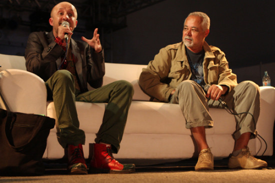Fabrício Carpinejar e Arthur Gomes em momento de poesia