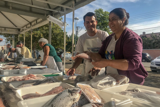 A Feira do Peixe, tradicional no município por levar pescados frescos à população na Semana Santa, promoveu neste fim de semana, em um projeto da superintendência de Aquicultura e Pesca, a sua primeira edição itinerante. Neste sábado (14) foi encerrada a primeira “Feira do Peixe nos Bairros”. Em dois dias: sexta-feira (13) e sábado (14), na pracinha do IPS, pescadores cadastrados pelo município comercializaram cerca de uma tonelada de peixes variados. A partir desta edição, em cada mês, a Feira passará por um bairro diferente de Campos.
