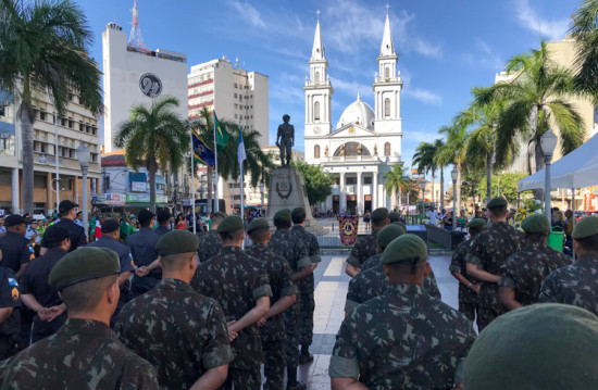Cerimônia foi realizada diante do Monumento ao Soldado Expedicionário, na Praça do Santíssimo Salvador, e reuniu forças militares, representantes de entidades civis e clubes de serviço.