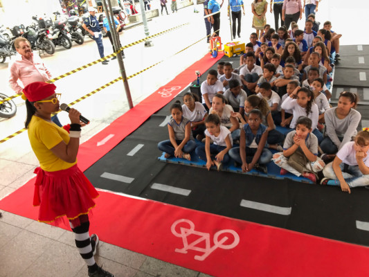 Em outra tenda, com a equipe de Educação no Trânsito da Guarda Municipal (GCM) e RONDAeTRAN devidamente caracterizada, crianças de escolas municipais assistiram a um vídeo educativo sobre comportamento no trânsito e participaram de forma interativa, simulando situações do dia a dia nas ruas. “Com essa forma lúdica de levar as mensagens às crianças, fica muito mais leve e eles assimilam melhor”, explica o coordenador da Ronda, Eneci Paulo.