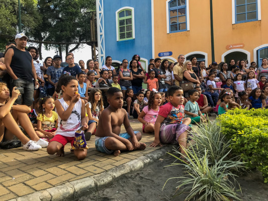 A programação foi especial: teve contação de histórias, esquetes musicais, teatro, apresentação de dança, e o que não pode faltar: o banho de chafariz. Neste sábado e domingo, a programação segue normalmente