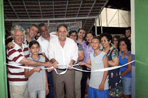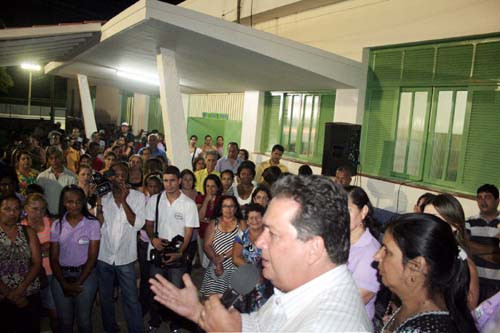 A comunidade de Baixa Grande prestigiou na noite desta segunda-feira (29) a solenidade de inauguração das obras de reforma e reestruturação da Escola Municipal Santa Terezinha, no distrito de Baixa Grande. Além das melhorias já realizadas na escola, durante a solenidade o Prefeito Nelson Nahim, acompanhado da primeira dama, Nélia Nahim, e da secretária de Educação, Joilza Rangel Abreu, anunciou mais um benefício para os alunos: Construção de ginásio poliesportivo coberto, para atividades extra classe, como dança, ginástica, entre outras, na quadra poliesportiva já existente no local.