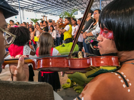 Espetáculo lítero-musical em lançamento de livro infantil de violinista e escritora campista é intensamente aplaudido pelo público da feira literária