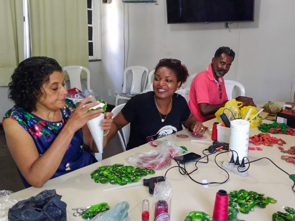 Oficina de artesanato do Caps AD em plena produção de árvores de natal de fuxico