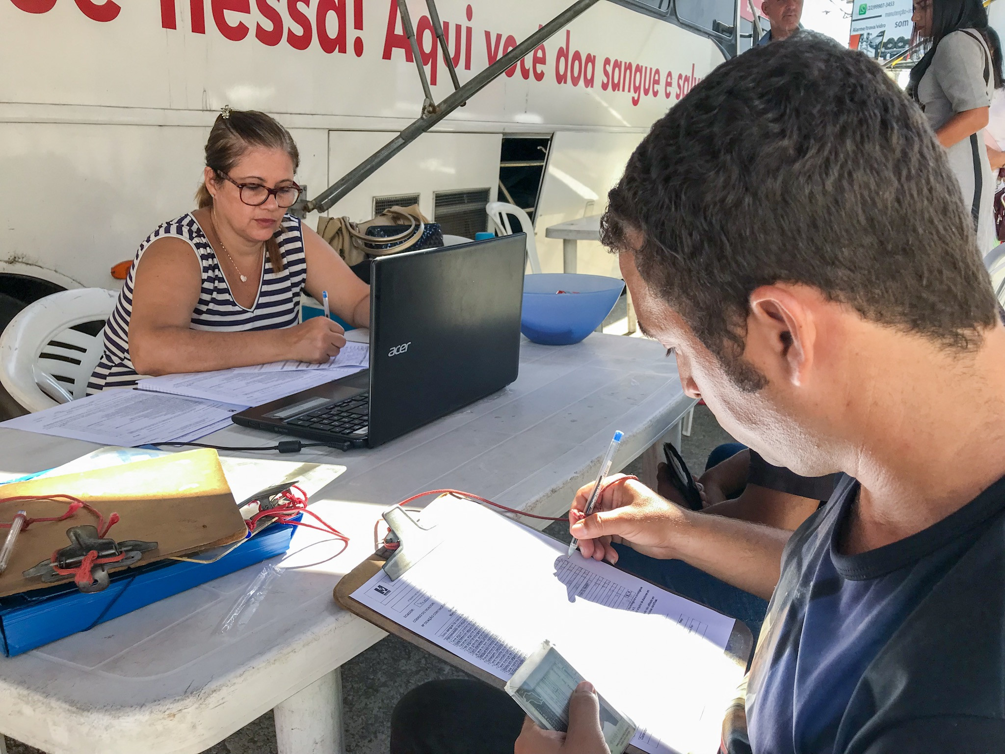 Logo na primeira hora de coleta, mais de 10 pessoas já haviam se apresentado para doar sangue