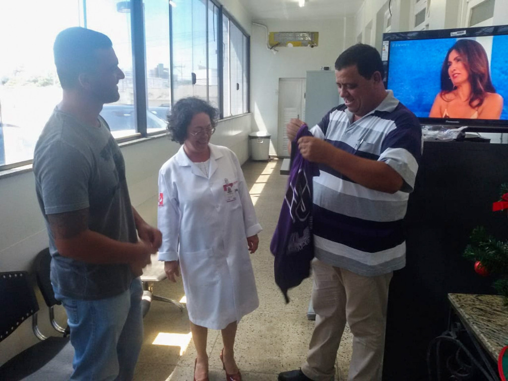 Hemocentro entrega a doador camisa sorteada do Campos Atlético