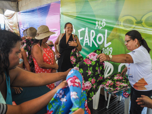A primeira Oficina de Criatividades do Sesc Verão Alô Farol 2019 acontece neste sábado (5) na Arena Esporte e já é um grande sucesso. Muitas pessoas compareceram ao espaço para aprender a fazer bolsas de tecido.