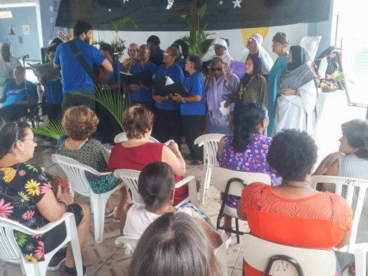 Coral e grupo de teatro cantam e encantam na Páscoa dos idosos