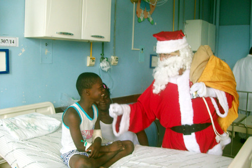 Pela manhã, os pacientes das clínicas e da emergência do hospital receberam a visita do grupo “Cantar e Amar”, e do Papai Noel, que distribuiu frutas e mensagens de carinho para internados e acompanhantes, numa festa organizada pela coordenação de serviço social da Fundação Dr. João Barcellos Martins (FJBM). Em seguida, os voluntários da “Fábrica da Alegria” distribuíram brinquedos para as crianças da pediatria.