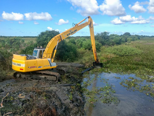 Durante os trabalhos, uma escavadeira hidráulica (long reach) faz a remoção da vegetação. A ação já foi realizada no entorno das pontes Pitangueiras e do Gote