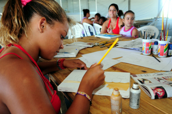 (09) a oficina de desenho e pintura na Tenda Cultural da praia do Farol de São