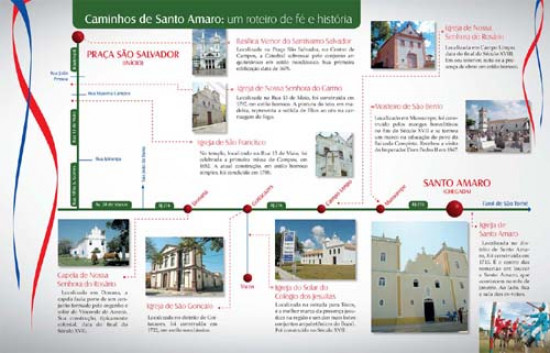Fazem parte do roteiro do Caminho de Santo Amaro, a Basílica Menor do Santíssimo Salvador, as Igrejas Nossa Senhora do Carmo, São Francisco, Nossa Senhora do Rosário, São Gonçalo, Solar dos Jesuítas, Arquivo Público Municipal; Santo Amaro, Capela de Nossa Senhora do Rosário e Mosteiro de São Bento.